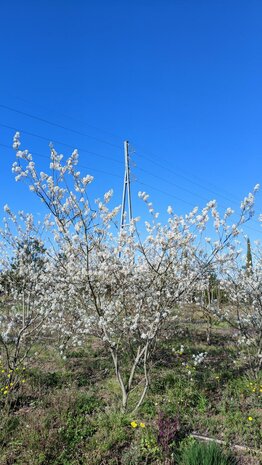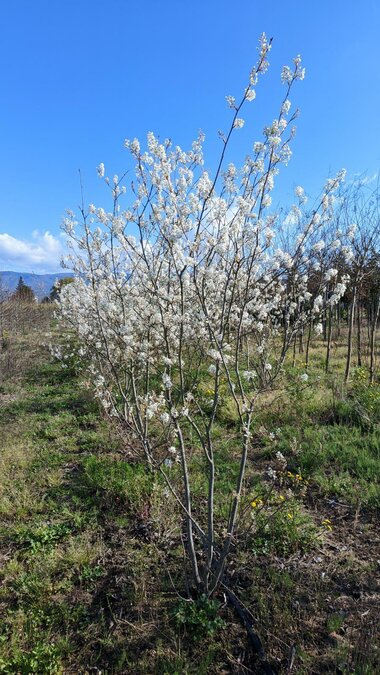 Eleganter Felsenbirnen-Baum XXL, 250 cm, mit weißer Frühlingsblüte und intensiver Herbstfärbung. Winterhart bis -18°C, für Sonne oder Halbschatten.