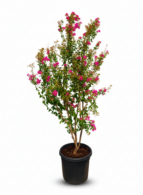 Die Lagerstroemia indica (Indischer Flieder) ist ein eleganter, mehrstämmiger Baum mit anmutiger und exotischer Ausstrahlung. Diese besondere Gartenpflanze ist bekannt für ihre üppige Sommerblüte mit rosa, gekräuselten Blüten und verleiht jedem Garten, jeder Terrasse oder jedem Patio ein mediterranes Flair. Dank der dekorativen Rinde, der schönen Herbstfärbung und des luftigen Wuchses ist der Indische Flieder ein echter Blickfang. Mit einer Höhe von ca. 200 cm ist er ideal für mittelgroße Gärten und auch als Kübelpflanze geeignet.