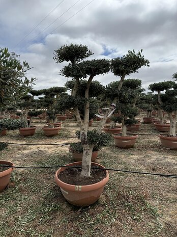 Die Olea Europaea Pom Pon ist ein einzigartiger und stilvoller Olivenbaum mit einem verspielten Charakter. Die verschiedenen „Wolken“ aus Blättern auf den Ästen verleihen dem Baum ein elegantes Aussehen, was diese Sorte zu einem perfekten Blickfang im Garten, auf der Terrasse oder am Eingang macht. Mit seiner anmutigen Form und mediterranen Ausstrahlung bringt dieser Baum sofort eine südliche Atmosphäre in Ihren Außenbereich. Der Pom Pon Olivenbaum ist nicht nur dekorativ, sondern auch winterhart und pflegeleicht.