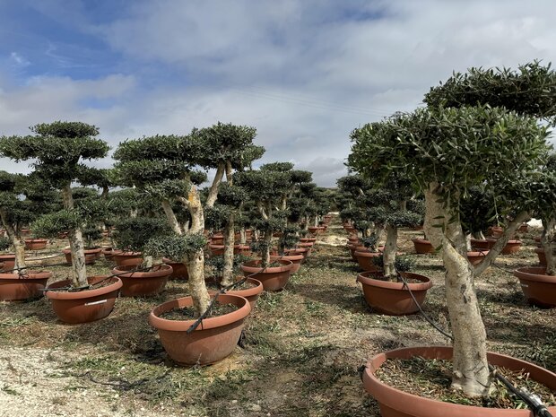Beschneiden: Jährlich schneiden, um die charakteristische Pom Pon-Form zu erhalten und das Wachstum zu fördern. Schneiden sorgt dafur das Risiko von Krankheiten und Schädlingen verringert und den Ertrag steigert. Schneiden Sie den Olivenbaum im zeitigen Frühjahr, bevor die Knospen austreiben.