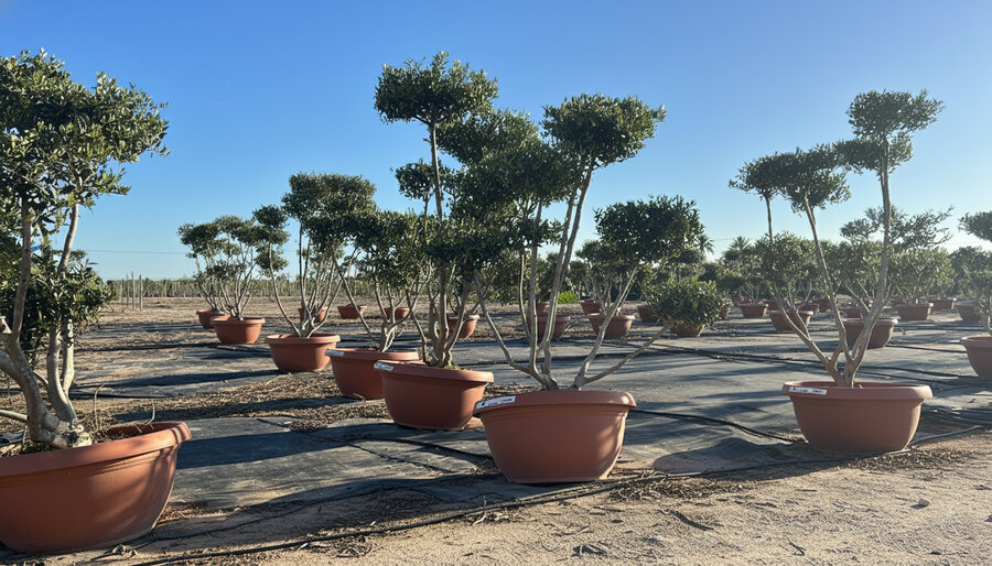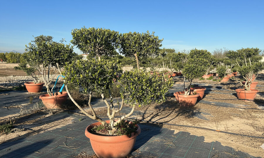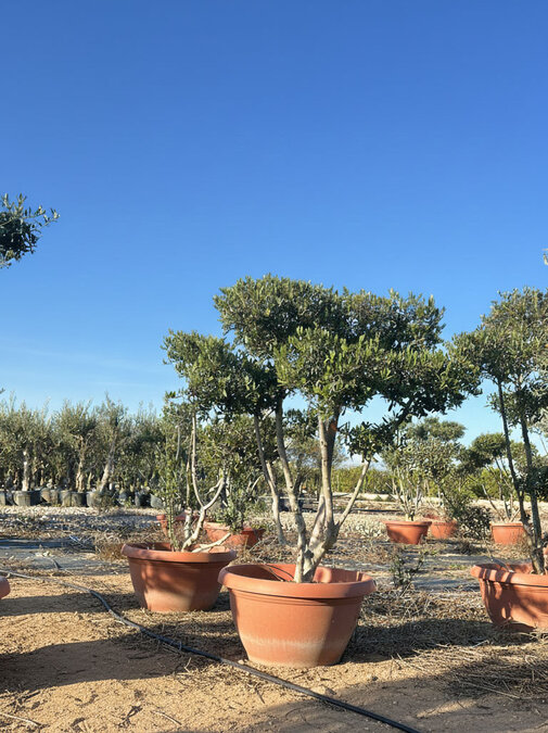 Beschneiden: Jährlich schneiden, um die charakteristische Pom Pon-Form zu erhalten und das Wachstum zu fördern. Schneiden sorgt dafur das Risiko von Krankheiten und Schädlingen verringert und den Ertrag steigert. Schneiden Sie den Olivenbaum im zeitigen Frühjahr, bevor die Knospen austreiben.