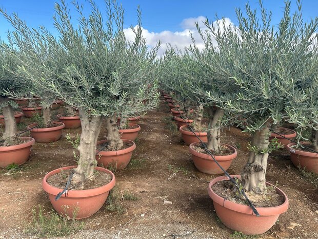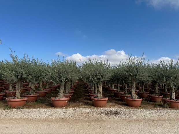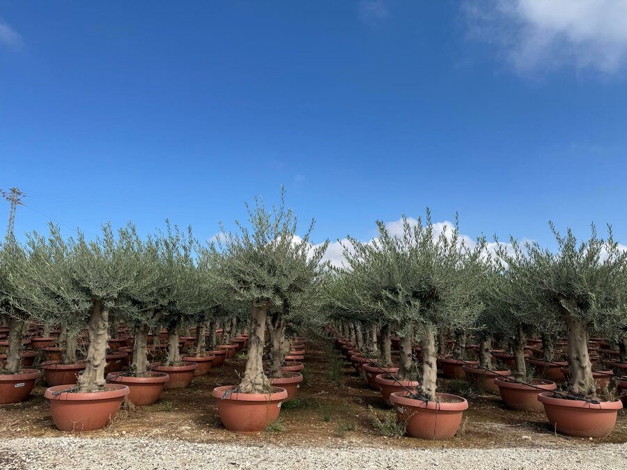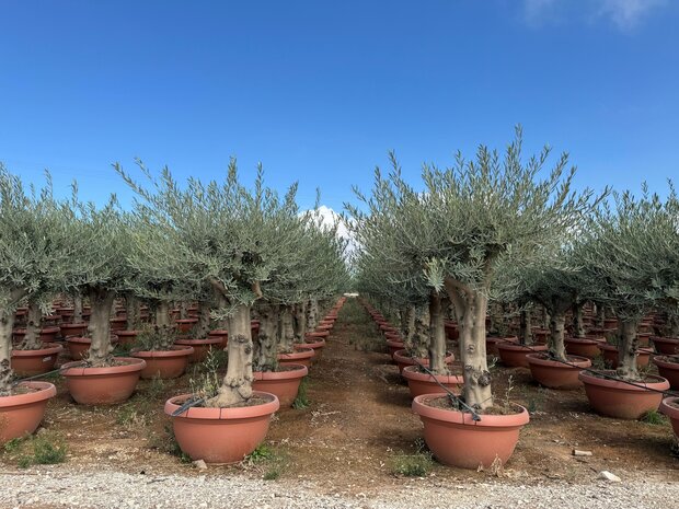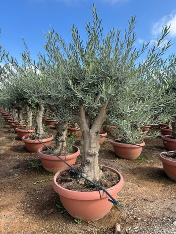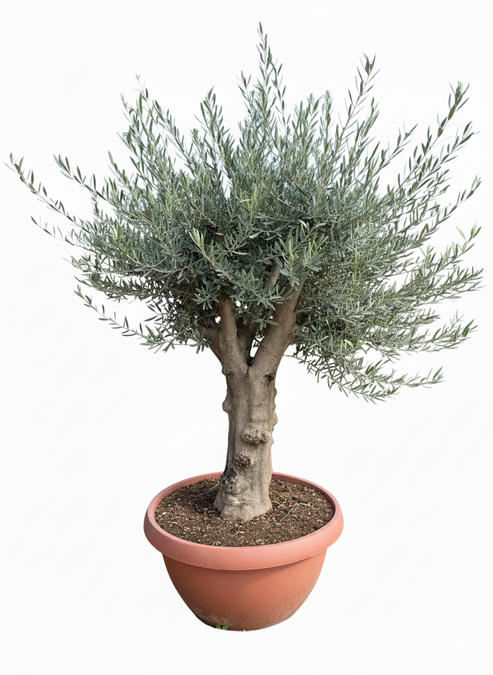 Verzweigter Olivenbaum mit glattem Stamm für den Außenbereich ist ein robuster Olivenbaum, der sowohl im Kübel als auch im Freiland gepflanzt werden kann. Dieser Olivenbaum ist winterhart und sehr pfl