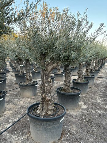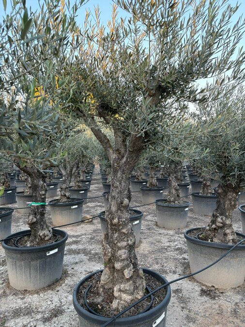 Dieser Olivenbaum mit robusten Stamm ist ein sehr kräftiger Olivenbaum, der in einen Kubel gepflanzt werden kann, aber auch im Freiland gedeiht. Auch dieser Olivenbaum ist winterhart.