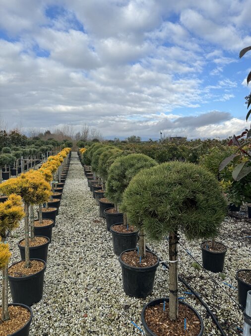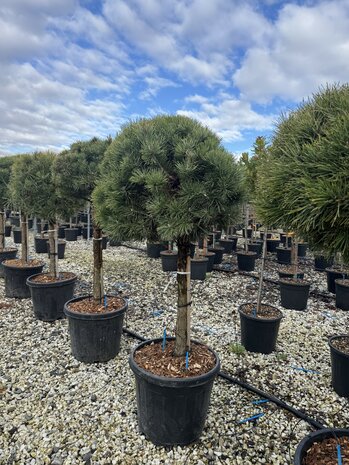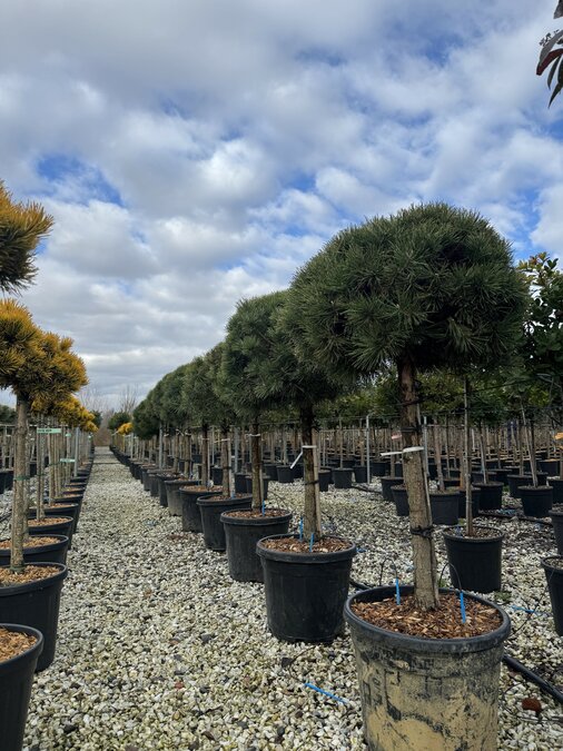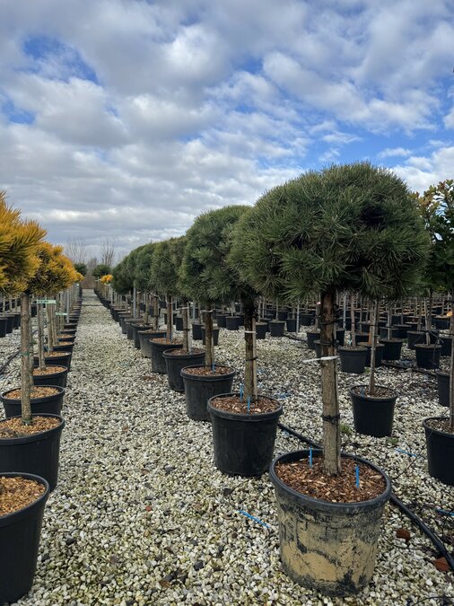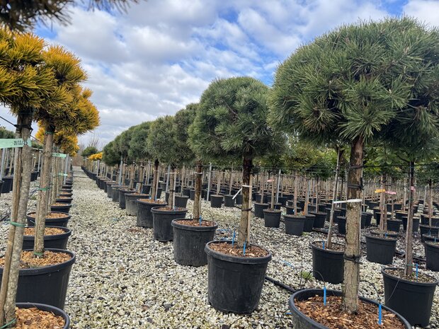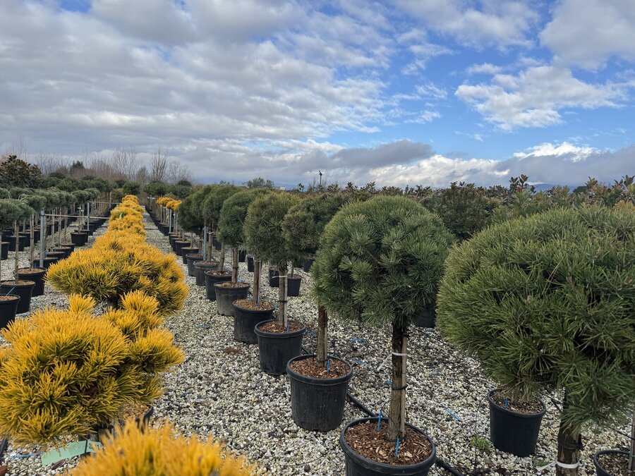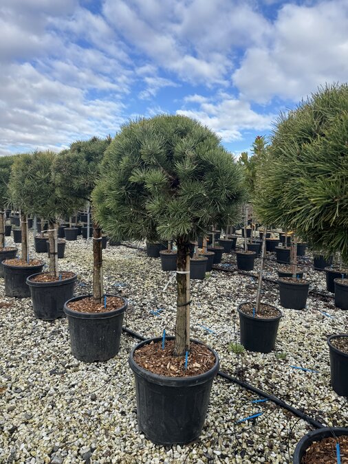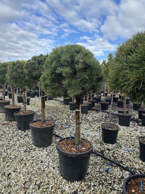 Mit einer Gesamthöhe von ca. 150 cm inklusive 35-Liter-Topf eignet sich diese Kiefer hervorragend als Solitär im Garten oder als immergrüner Strukturgeber im Beet. Die offene, lockere Krone verleiht dem Garten eine natürliche Atmosphäre.