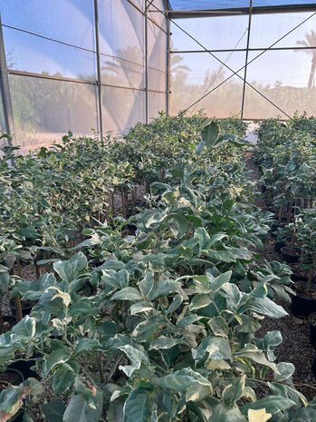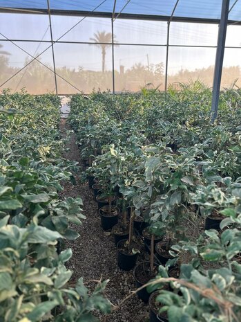 Der Tiger Lemon Baum (Citrus limon ‘Variegata’) ist ein besonderer Citrusbaum, der sofort durch seine panaschierten Blätter und dekorativen Früchte auffällt. Diese Citruspflanze sorgt für ein mediterranes Ambiente und kann bei guter Pflege aromatische Zitronen tragen. Der Tiger Lemon ist nicht winterhart und sollte in den kälteren Monaten im Haus oder in einem beheizten Wintergarten untergebracht werden.